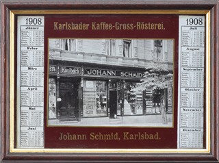 Reklamní kalendář Johann Schmid, Karlsbad, 1908.