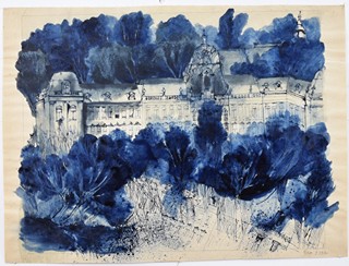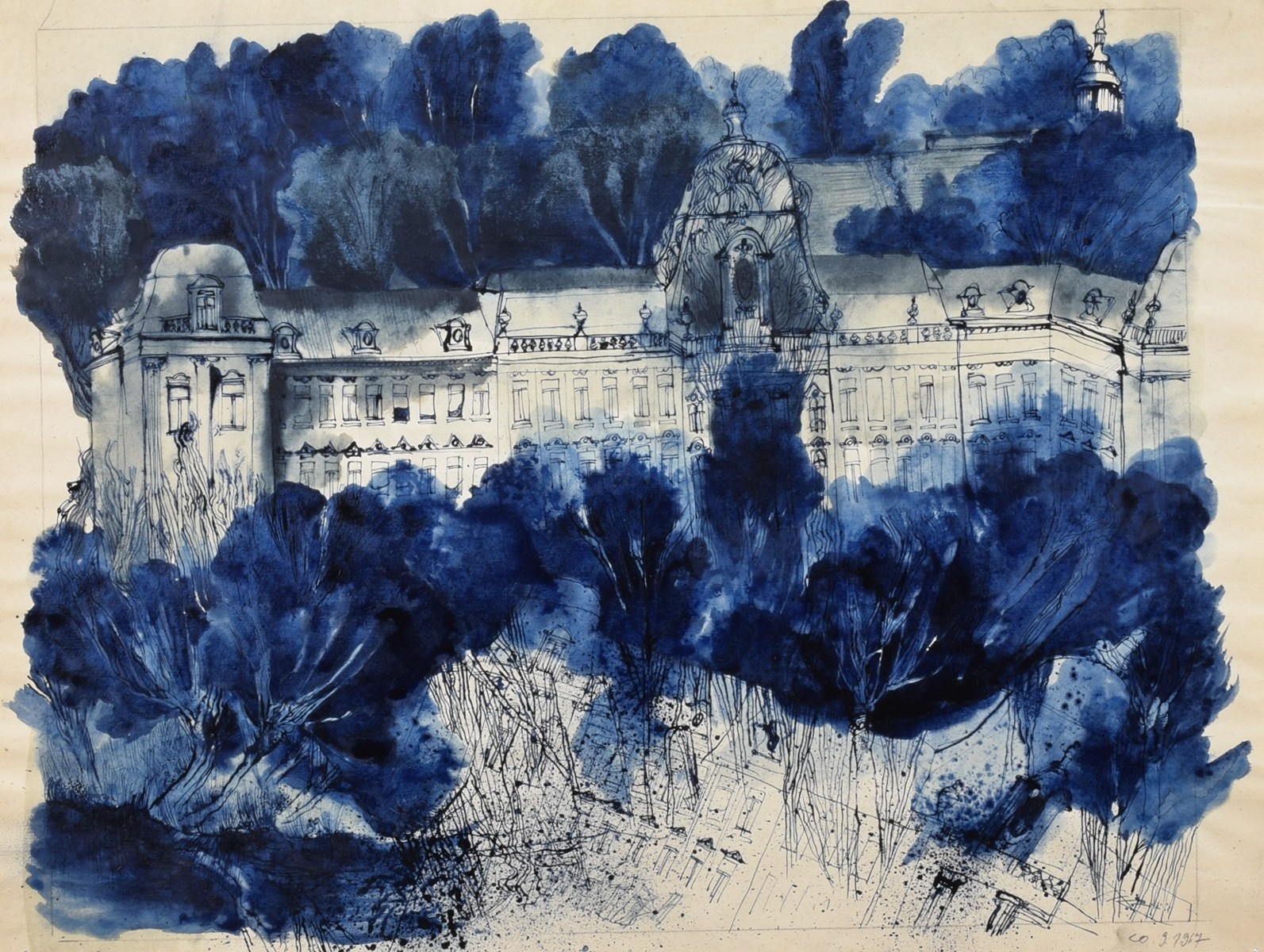 Lavírovaná kresba tuší, papír, 43 x 57 cm, datováno 20. 9. 1967, signováno na zadní straně tužkou, volný list.