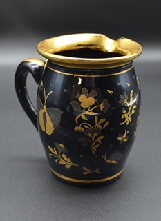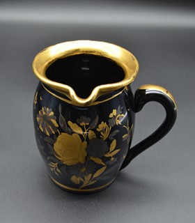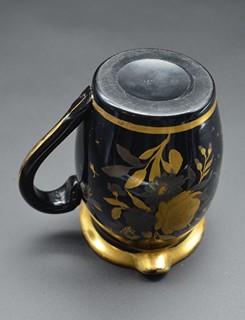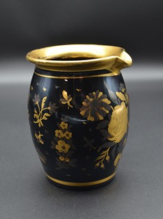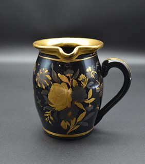 Muzeální sklo v luxusním stavu, malba zlatem a stříbrem na černém hyalitu, Buquoyské sklárny-kolem roku 1840, jižní Čechy