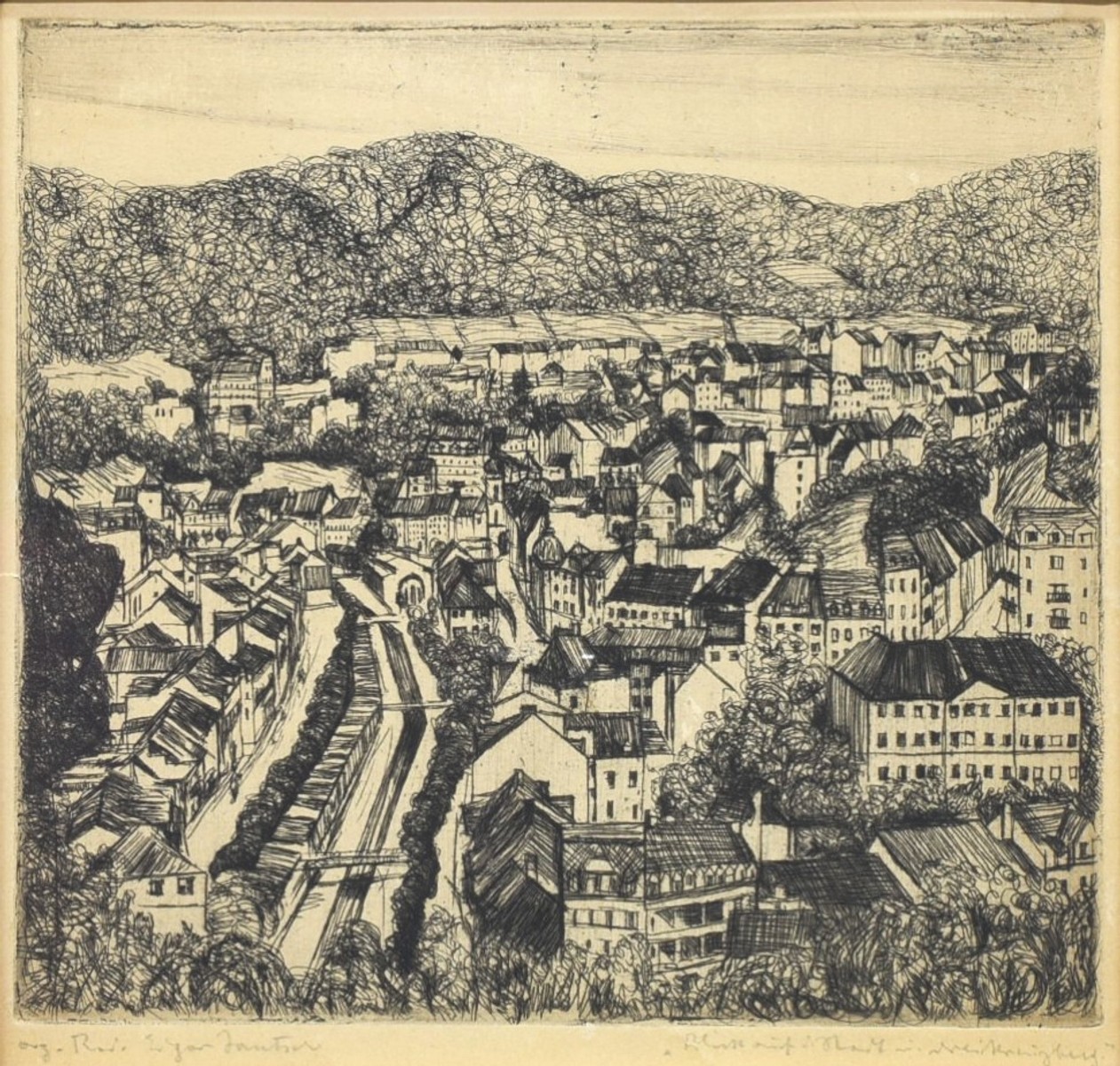 Lept, papír, 24 x 26 cm, signováno nečitelně tužkou, autorsky popsáno, 30. léta 20. stol., pasparta, sklo, rám.