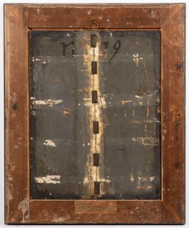This painting depicts an allegorical representation of the Last Judgement according to Christian belief. Christ as the judge of the world sits in the upper centre of the painting on a throne of clouds, surrounded by his apostles. Angels with trumpets spread the news of the Last Judgement in the various directions. On the earth, the tombs are opening - one is indicated as a sarcophagus in the bottom left corner and the dead are climbing out, while at the same time a violent firestorm approaching from the left in the background signifies the end of the world. In the foreground, an angel separates the figures into good and evil. Some are led up to heaven on the left, while the others are led into the torn-open maw of hell on the right. Oil on wood 60.5 x 46.5 cm