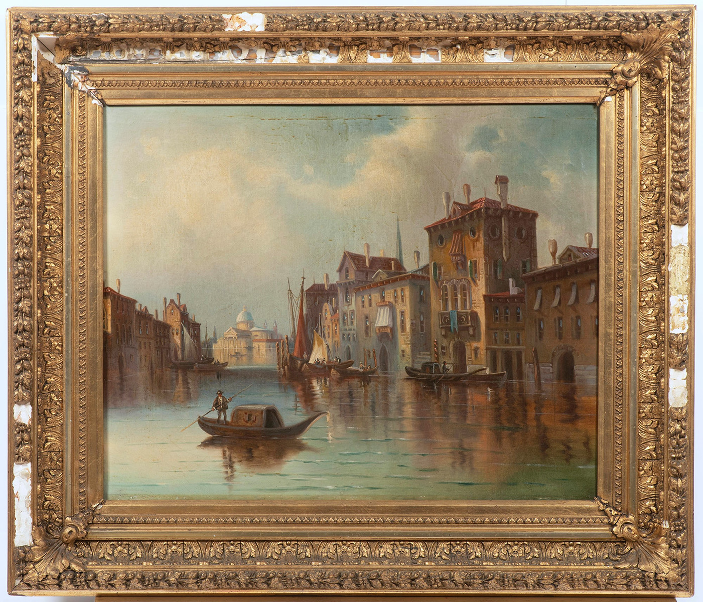 View of a Venice canal with a gondolier. Oil on canvas 55,5 x 69 cm