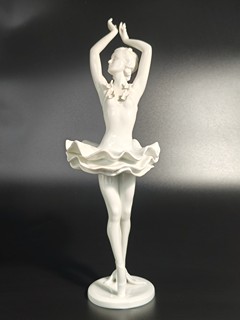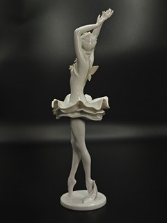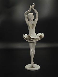 Tančící baletka v bílých barvách s motýlími ozdobami, značeno tištěnou značkou, výška 30 cm.
