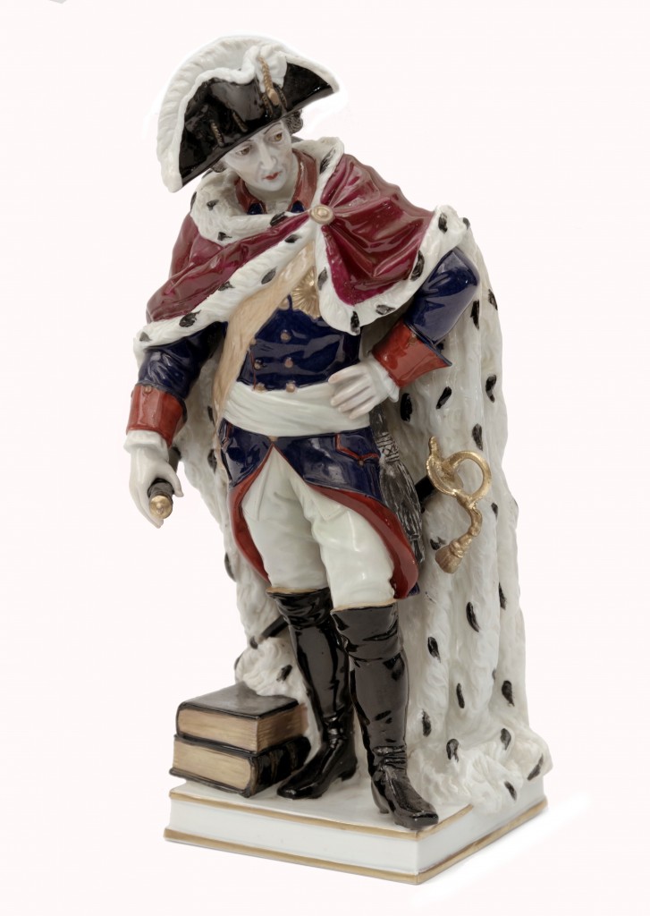Pestře malovaná porcelánová plastika podle pomníku, který zhotovil Johann Gottfried Shadow ve Štětíně v roce 1791. Podgalzurní modrá malířská značka (neurčitá), Ludwigsburg 1806 - 1816, výška 22,5 cm.