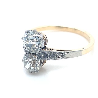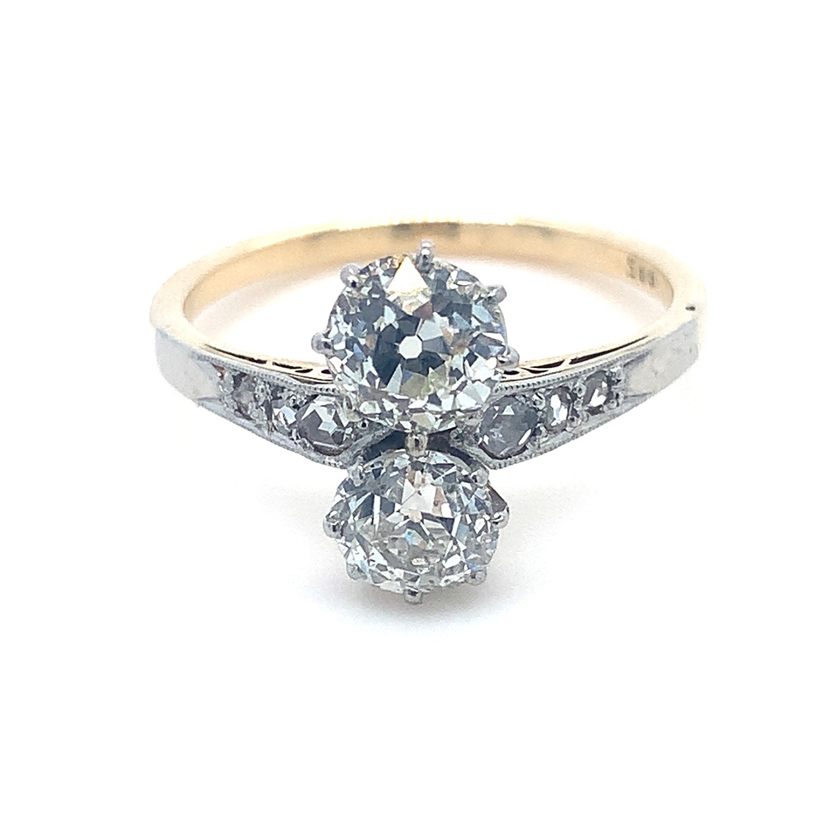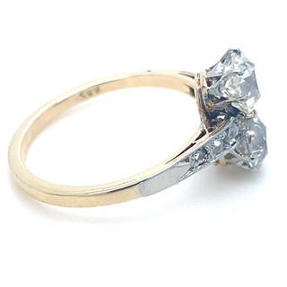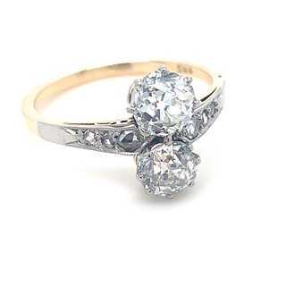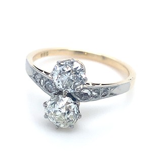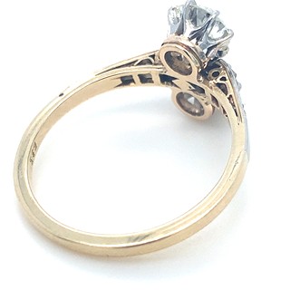 Au 585/540/1000, hmotnost 3,15g, velikost 57, diamanty o celkové váze 1,45ct., velké diamanty o celkové váze 0,73ct. + 0,65ct., barva H-I, čistota VS-SI, velmi dobrý stav prstenu, Československo 1930 Praha, atest punc.úřadu