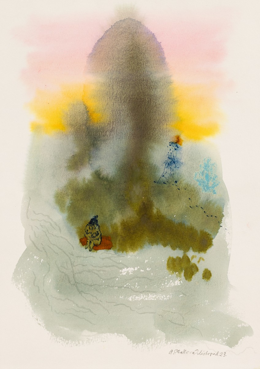 Alžběta Skálová (*1982) je dcera Františka Skály, ilustrátorka a malířka. Ačkoli je tvorbou svého otce ovlivněna, našla si vlastní poetickou řeč. Jako ilustrátorka je velmi žádaná, ale věnuje se také volné tvorbě. Zachycuje deníkovým způsobem různé situace a příběhy. Je mistryní akvarelu – dokáže v neuvěřitelné zkratce vytvořit téměř abstraktní prostředí, do něhož pak zasazuje aktéry příběhu. Má za sebou i filmovou tvorbu a vydala i řadu autorských knih. Několikrát již získala mezi jinými i ocenění Nejkrásnější kniha roku. V akvarelu vytvořeném několika barevnými skvrnami dojímá diváka neznámý příběh dvou postaviček. Jde o jakési výtvarné haiku.