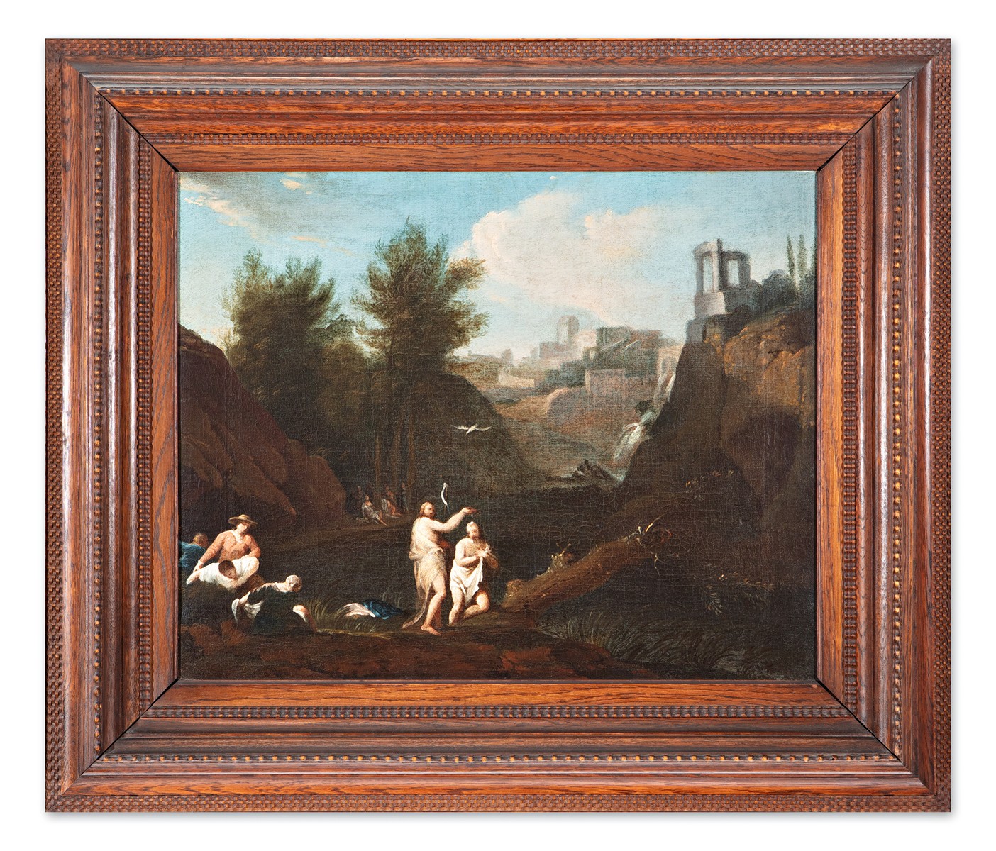 Obraz zobrazuje křest Ježíše Krista a stylově odpovídá nizozemské malbě ze 17. století. V této době se náboženská témata často zasazovala do rozsáhlých krajin, což bylo typické pro holandské umělce během Zlatého věku. Podobná díla, jako například od Pietera Fransze Isaacze nebo Abrahama van Dijcka, zdůrazňují realistický přístup a detailní vykreslení přírody, které doplňuje duchovní obsah obrazu. Nizozemští malíři té doby často propojují biblické scény s každodenními výjevy, čímž umožňují divákům navázat osobní vztah s duchovním obsahem. Tato kombinace sakrálních témat s realistickým pozadím je jedním z hlavních rysů tehdejší náboženské malby.