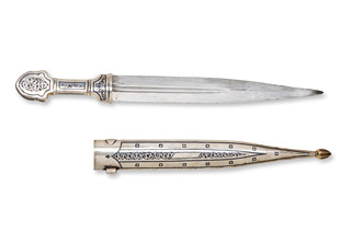 Dýka typu Kinžál z Kavkazu, vyrobená na počátku 21. století. Zbraň je bohatě zdobená, což je charakteristické pro kavkazské zbraně, které často kombinují funkčnost a estetiku. Dýka je dochována s pochvou.