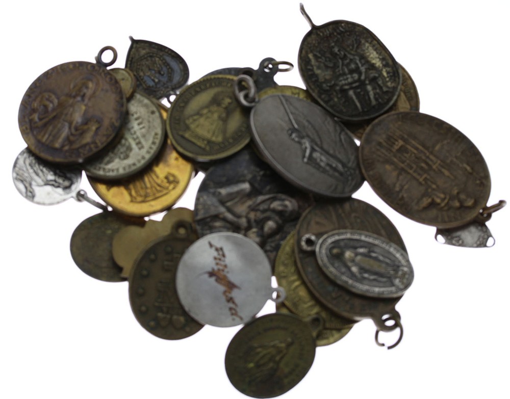 Svátostky, 25 ks svátostek z obecných kovů, cca 19.století