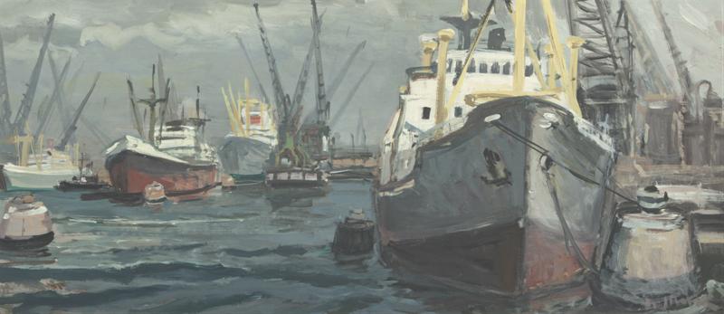 Rotterdam - Šedý den | Studoval Uměleckoprůmyslovou školu u prof. Bendy a Akademii výtvarných umění u prof. J. Obrovského. Malíř, grafik a ilustrátor, jehož oblíbeným motivem bylo moře, lodě a maríny.