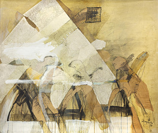 | technika | kombinovaná technika na kartonu podlepeném gázou |