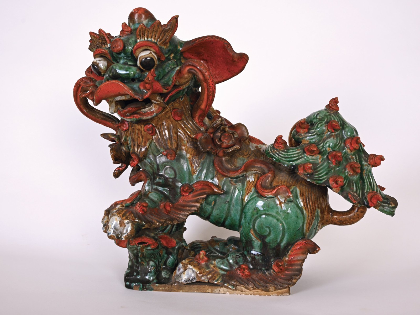 19. století Glazovaná keramika 42,5 cm Tradiční motiv čínské ikonografie - strážný lví pes Fu.