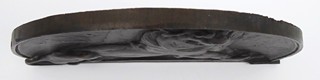 Francie 1875 - 1895. Patinovaný bronz. Signováno vpravo dole A. BARTHOLDI. Autor: Frédéric Auguste Bartholdi (1834-1904) - tvůrce slavné sochy Svobody v New Yorku. Výška 14,5 cm, šířka 23 cm. Plaketa či reliéf z patinovaného bronzu ve tvaru lunety s reliéfní postavou ležícího lva na vzpřímených předních tlapách se zdviženou hlavou. Slavná socha Belfortského lva vznikla jako oslava a poděkování francouzským vojákům, kteří v roce 1870 po dobu 103 dnů bránili obležené město Belfort proti pruské přesile.