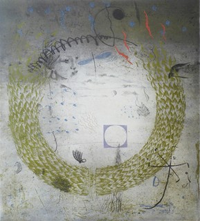V jeho volné grafické tvorbě, kterou tiskl vlastním lisem, vyniká vícebarevný lept a akvatinta. Jeho kompozice jsou zdánlivě jednoduché, ale plné symboliky a tajemství. Používal znaky odvozené z reálných objektů, jako jsou stromy, vodní kapky, nebeská tělesa a různá zvířecí a rostlinné formy.