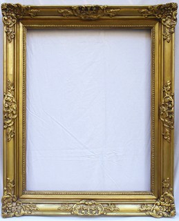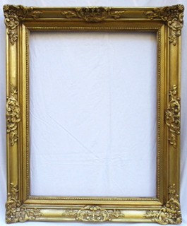 Československo 1920 - 1940. Dřevo se zlatou patinou. Světlost 49 cm x 63 cm, celkový rozměr 65 cm x 79 cm. Zlatý rám salonního typu s reliéfními ornamenty a vnitřní lištou s granulací.