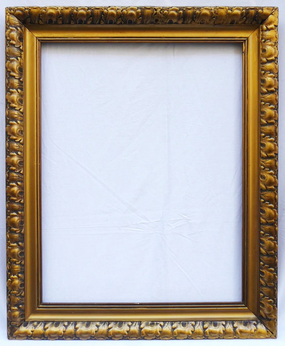 Čechy 1900 - 1930. Dřevo se zlatou patinou. Světlost 41 cm x 53 cm, celkový rozměr 54 cm x 66 cm. Rám zdobený na okrajích reliéfním ornamentem listu.