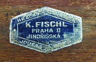 Evropa 1880 - 1930. Ebenové dřevo, kost či celuloid. Prodejce: Karel Fischl, Hračky všeho druhu, Praha. Rozměr originální dřevěné schránky: 16 cm x 11 cm x 3 cm. Rozměr hracích kamenů: 2,5 cm x 1,3 cm x 0,5 cm. Společenská hra domino s hracími kameny z ebenového dřeva s kostí či celuloidem. V originální dřevěné zdobné krabičce s originální papírovou etiketou se jménem prodejce: K. Fischl, Praha II. Jindřišská 1 - HRAČKY SPIELWAREN JOUETS TOYS. Zajímavý sběratelský kousek či nápaditý dárek.