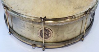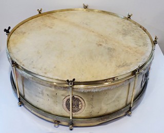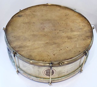 Čechy, Hradec Králové, po roce 1889. Mosaz, kůže, ocel. Výrobce: Slavná česká firma zabývající se výrobou hudebních nástrojů V.F. Červený, jež byla založena roku 1842 Václavem Františkem Červeným v Hradci Králové. K jejím zákazníkům patřila nejen rakousko-uherská armáda a císařský dvůr ve Vídni, pro něhož byla c.k. dvorním dodavatelem, ale také další armády evropského kontinentu. Základní průměr bubnu 65 cm, vlastní šířka bubnu 23 cm. Na obvodu bubnu gravírovaný zdobný nápis v mosazi : Sp. Voj. vysl. v Plzni. Dále je buben označen oceněním, jež tato významná firma dostala: Zlatá reliéfní medaile z Mezinárodní výstavy v Paříži v roce 1889 (PREMIÈRE RÉCOMPENSE MEDAILLE D´OR A V.F. CERVENY & FILS.