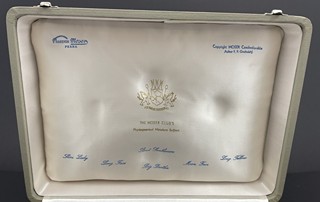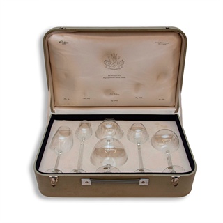 Československo, Karlovy Vary, od roku 1957. Křišťálové sklo. Autor nápadu na kolekci obřích číší ke 100. výročí založení firmy Moser a zároveň i autor návrhu jejich designu: František Chocholatý (1902-1973). Návrh z roku 1957. Název kolekce obřích číší: Fyziognomický bar. Tato kolekce proslula na Světové výstavě EXPO konané v roce 1958 v Bruselu. Podle této kolekce šesti osobitých obřích číší pojmenovaných Štíhlá dáma, Tlouštík, Tlustá Berta, Měsíční tvář, Dlouhý pán a Optimista vznikl v roce 1960 i Mezinárodní klub obřích číší. Každý zájemce o klubové členství si musel vybrat jednu ze šesti obřích číší, jež odpovídá jeho typu osobnosti. A absolvoval vstupní zkoušku, při níž se budoucímu členovi muselo podařit do roztočené obří číše nalít alespoň pár kapek aperitivu typického pro Karlovy Vary - Becherovky. Členství v tomto klubu získali světově známé osobnosti např. herec Robert Redford, muzikant Louis Armstrong, herečka Sophia Loren či španělský král Juan Carlos I. Kolekce šesti miniatur těchto obřích číší z křišťálového skla. Výška jednotlivých číší: Slim Lady 14,5 cm, Long Fase 10,5 cm, Stout Gentleman 8 cm, Big Bertha 6,5 cm, Moon Face 9,5 cm a Long Fellow 13 cm. V luxusní originální etui uvnitř s modrým nápisem BOHEMIA MOSER PRAHA, Copyright MOSER CZECHOSLOVAKIA, Author F.P. Chocholatý a s centrálním zlatým logem ŠKODA a nápisem THE MOSER CLUB´S Physiognomical Miniature Snifters.