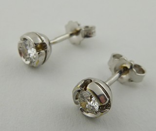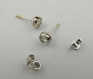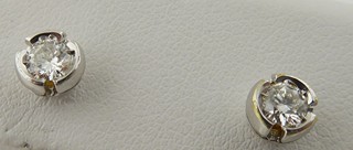 Evropa, přelom 20. a 21. století. Bílé osmnáctikarátové zlato, dva přírodní diamanty o celkové váze 0,50 ct, barva G, čistota VS2-Si1. Ryzost Au 750/1000, celková hmotnost 2,15 g. Průměr náušnic 5 mm. Klasické elegantní náušnice z bílého osmnáctikarátového zlata s přírodními diamanty moderního briliantového brusu. Zapínání náušnic je na puzetu. Značeno: československý punc kohout a značka ryzosti 750.