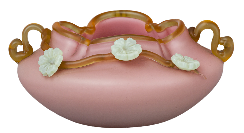 nabíhané růžově tónované sklo, natavené, hutně tvarované květiny