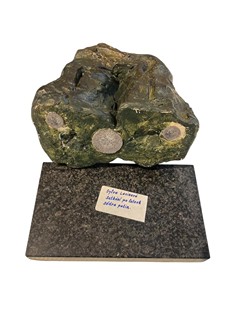Plastika s názvem ´´Setkání po letech ´´ od české sochařky Sylvy Lacinové. Socha vznikla podle jejího návrhu z roku 1991- kolorované perokresby s názvem: Setkání ve žluté krajině. Celková výška díla i s žulovým podstavcem 27 cm. Bez podstavce 24 cm. Šířka a hloubka dle podstavce je 13 x 22 cm. Bez podstavce je 11 x 20 cm. Patinovaná sádra, žula. Bez poškození. Plastika je na podstavci položená, není připevněná. Ze spodní strany je socha podlepená textilií pro měkký dosed.