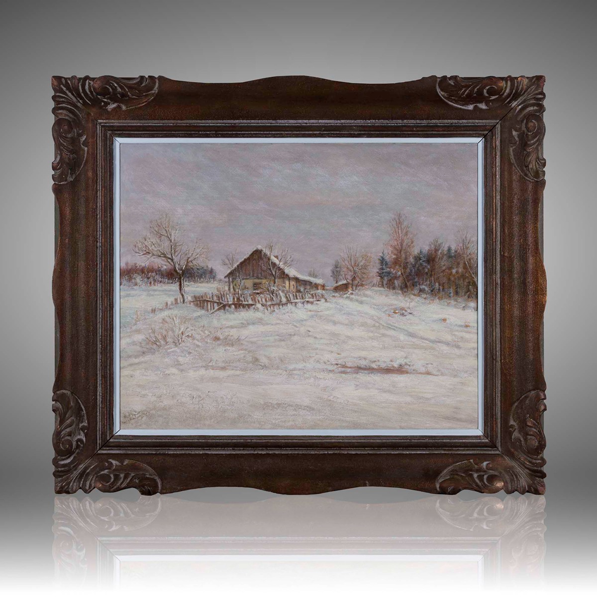 Tento reprezentativní olej na lepence je mistrovskou ukázkou zralé tvorby Františka Kavána, klíčové postavy Mařákovy školy. Dílo spadá do autorova vyhledávaného období, kdy se po symbolistní etapě vrátil k ryzímu realismu rodného kraje. Kaván se zde projevuje jako nekorunovaný mistr zimního šerosvitu; s bravurou zachycuje prchavý okamžik tání pod olověnou oblohou, kde sněhová pokrývka rozehrává nekonečnou škálu perleťových a zemitých valérů.