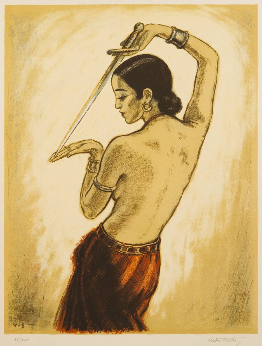 Barevná litografie na papíře se slepotiskovým razítkem, 39,8x30,4 cm (56x38 cm). Sign. monogramem v tisku vlevo dole "V.S." Verso tužkou pod tiskovou plochou číslováno a sign. "32/200 Viktor Stretti".