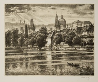 Viktor Stretti - pražský malíř a grafik. Studoval na Uměleckoprůmyslové škole v Praze a 3 roky na pražské akademii umění (u profesora Ženíška), v letech 1898-1899 v Mnichově (u prof. C. Marra a P. Halma). R. 1898 získal medaili na výstavě v Mnichově za soubor leptů. R. 1900 v Praze vystavoval grafiku. R. 1901 pobýval v Paříži a Normandii, poté se r. 1902 vrátil zpět do Prahy. Jeho "Pohled na Hradčany s Palackého nábřeží" (1898) bývá považován za první pražský motiv moderní české grafiky. Strettiho dílo charakterizují portréty a pohledy na města, zvláště Prahu, a také krajiny z mořského pobřeží. Vedle malby a grafik vytvořil i několik plastik. Spoluzakládal Sdružení českých umělců grafiků "Hollar", řadu let byl jeho předsedou.