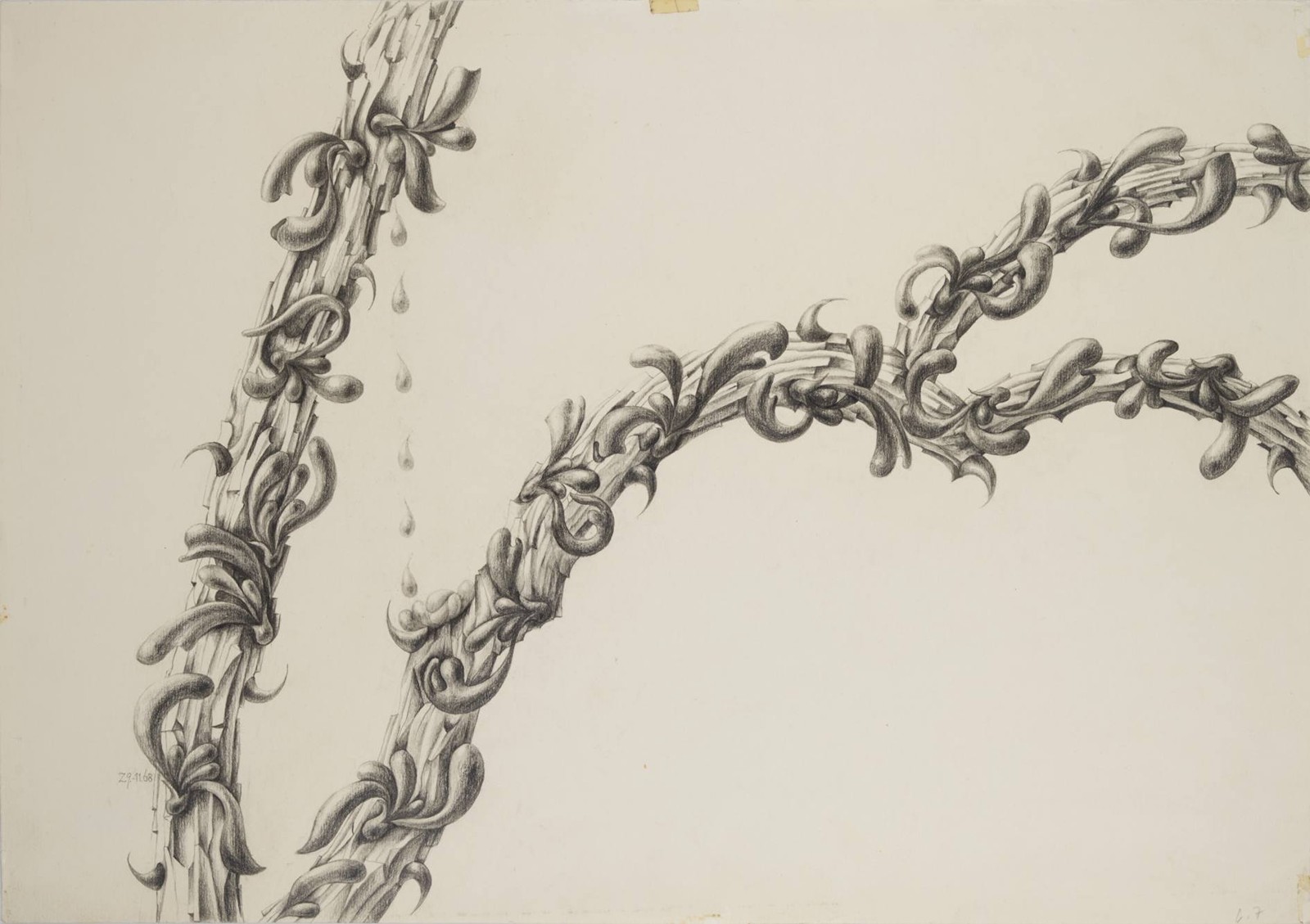 Kresba tužkou na papíře, 31x44,5 cm. Recto tužkou vlevo dole sign. monogramem a dat. "ZB 11.68". Verso tužkou název díla, při horní straně a vpravo dole stopy po adjustaci páskou. Recto při pravé straně stopy po lepidle.