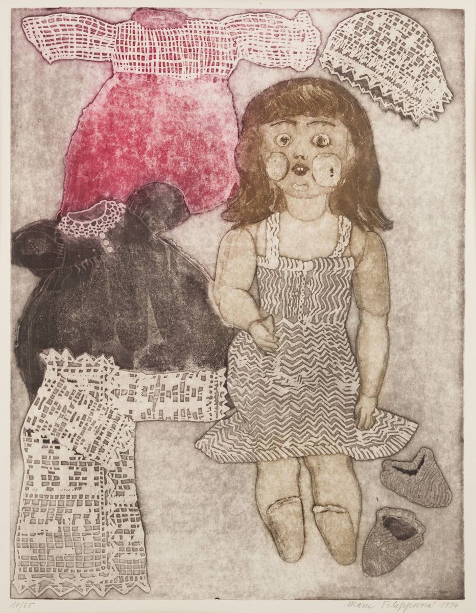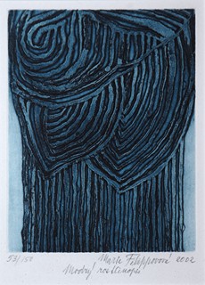 1974 Barevný lept na papíře, 43x33 cm (60x42 cm). Čísl. tužkou vlevo dole "10/25", sign. a dat. vpravo dole "Marie Filippová 1974". Paspartováno. Verso adjustováno páskou k paspartě.