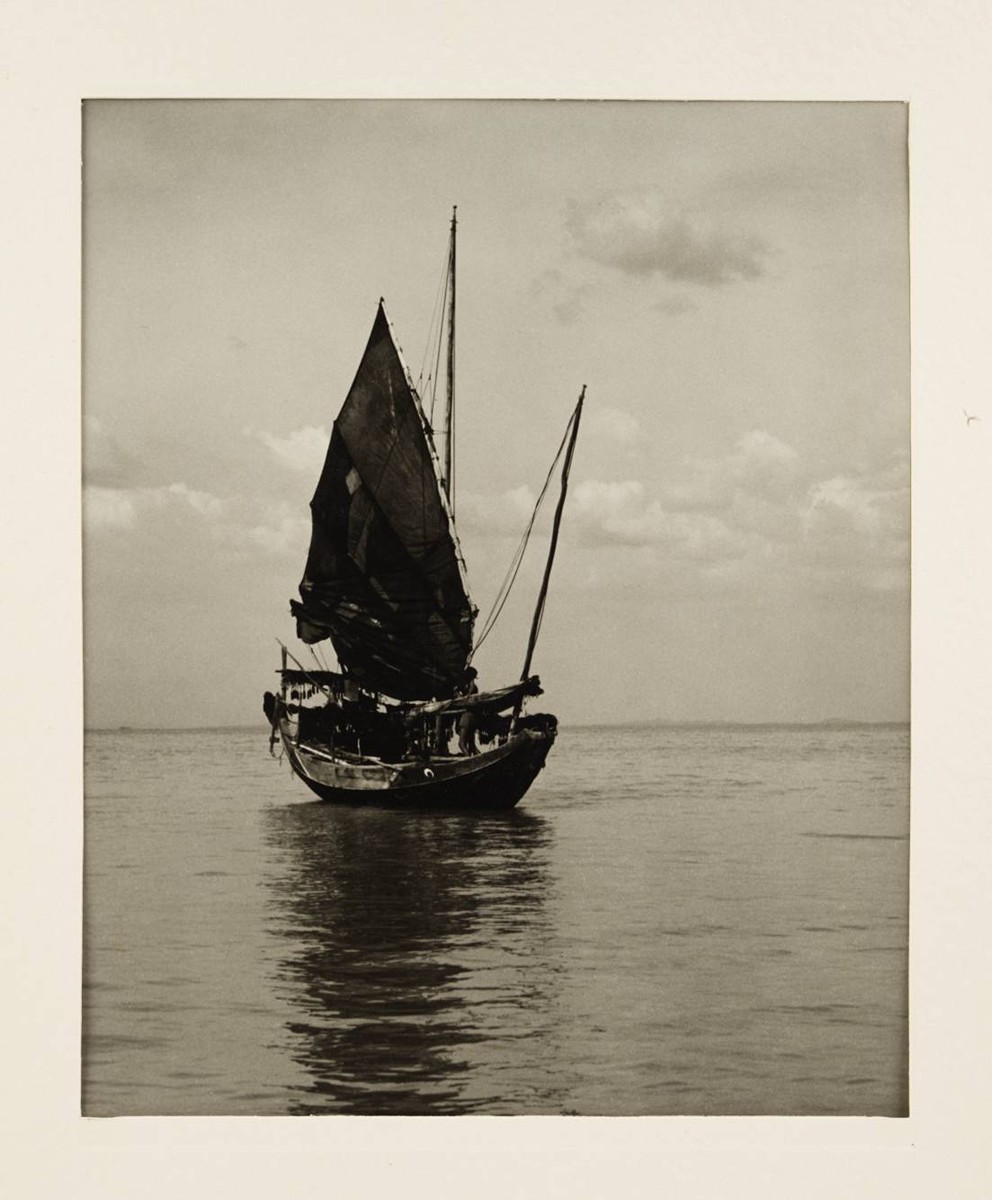 A Chinese Fishing Junk: verso tužkou název fotografie, kuličkovým perem jméno autora, lokace a datace "Tang Seng Huat Penang 1952". Verso po obvodu hnědá páska.