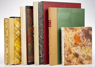 Kolektiv autorů: Mistr Jan Hus v životě a památkách českého lidu. Vel. 2°, 31,2x23,5 cm. 124 čísl. s., česky. LVII listů (část tištěna oboustranně) obrazových příloh. Titul. dvoustrana tištěna v černé a červené barvě. Na konci knihy vevázána příloha Konfiskovaných rakouskou censurou šestadvacet míst v díle z roku 1923 a původní obálka. Pevná polopergamenová vazba Karla Dudeška: hřbet z bílého pergamenu s plastickým výstupkem s aplikací husitského kalicha z červené kůže, zlacení, desky potaženy autorským papírem, barevný kapitálek, zlacená horní ořízka, kartonové pouzdro. Na předním přídeští ex-libris Karla Dudeška. Vydáno péčí Českého Čtenáře za redakce Aug. Žaluda v Praze r. 1915. Velmi dobrý stav, pouze pravý horní roh knižního bloku a pouzdro lehce ušpiněny.