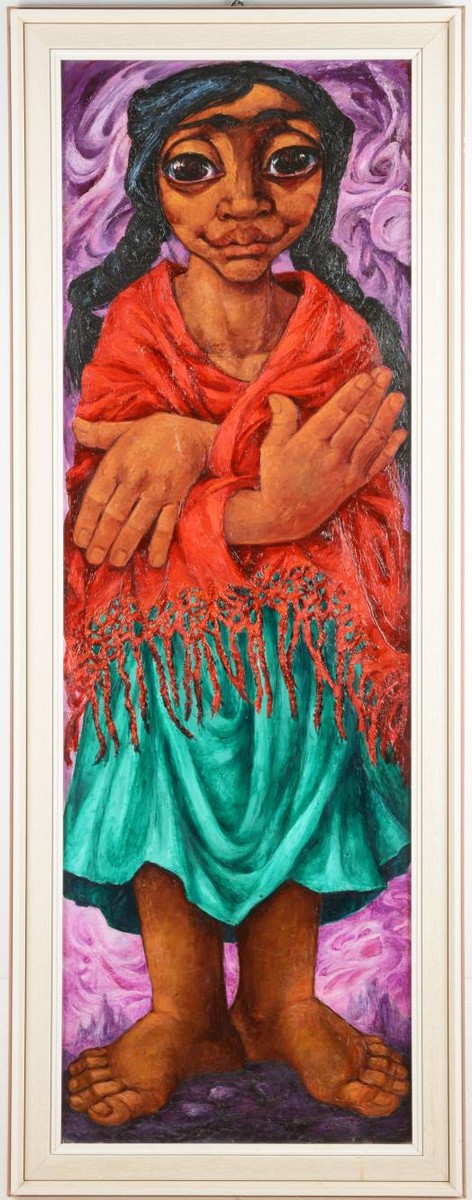 Olej na sololitu, 148x48,5 cm, verso věnování s podpisem umělkyně. Rámováno.