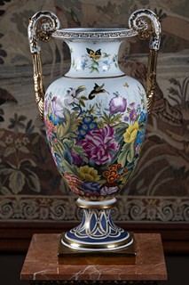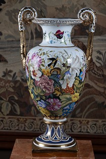 2. pol. 20. století, porcelán, zlaceno, pestře malovaný motiv kytice s ptáčky, červená tištěná značka Gardner