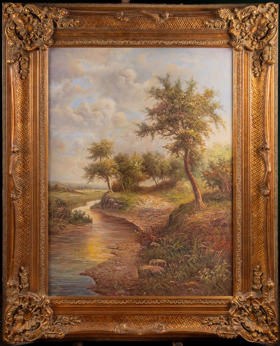 Krajina s potokem a stromy