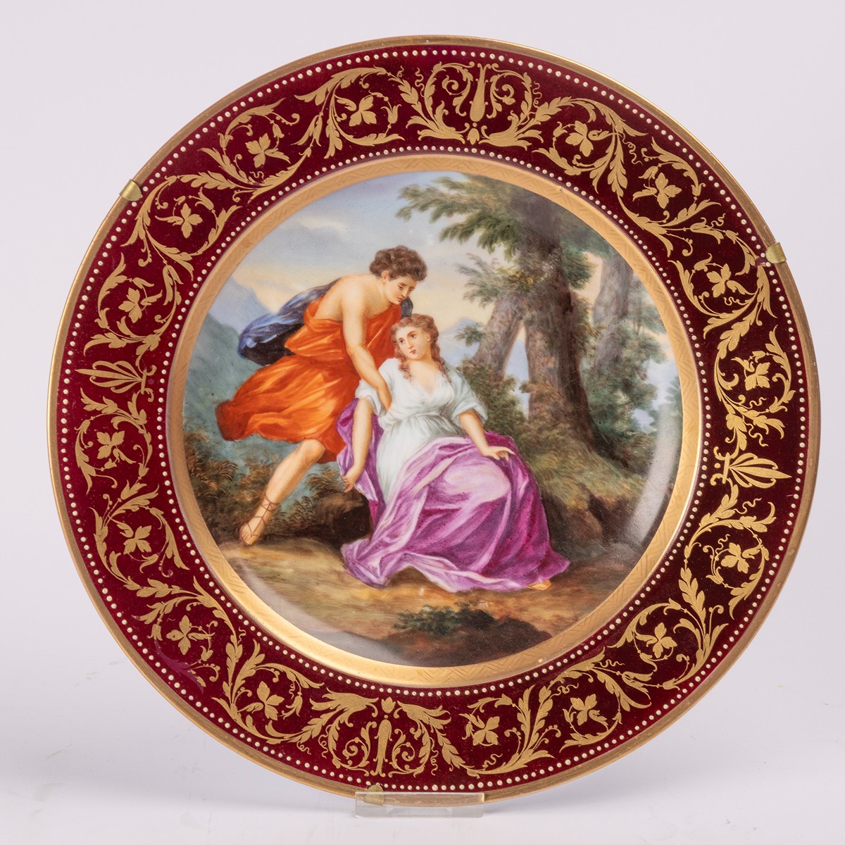 konec 19. století, porcelán, pestře malovaný, dokolorovaný dekor ve stylu Sorgenthal, Vídeň, apokryfní značka Vídně