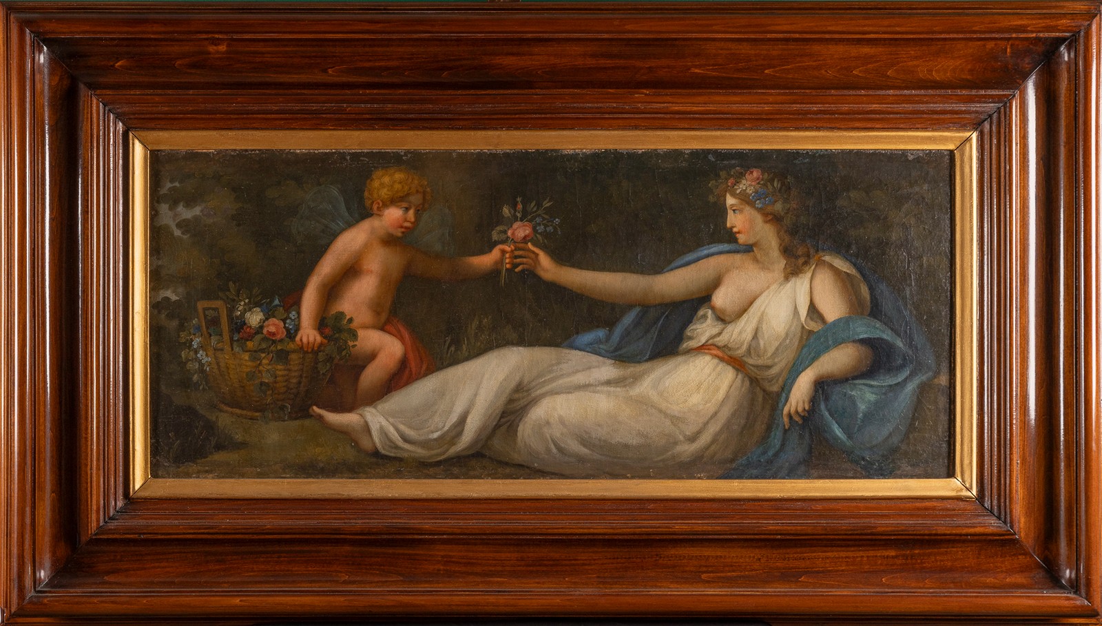 Ležící dívčí akt s putti a košem květů