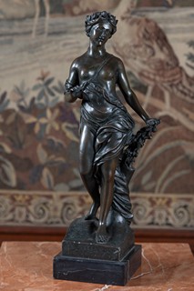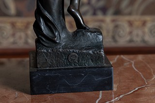 novodobé, bronz, zelená patina, na zadní straně označeno medailí, mramorový podstavec