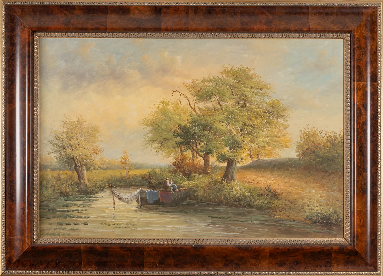 Letní krajina s rybářem na řece