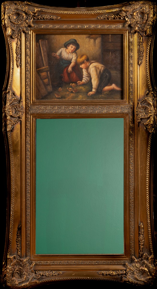 novodobé, dekorativní zlacený rám,v horní čádti malba dětí, olej/dřevo