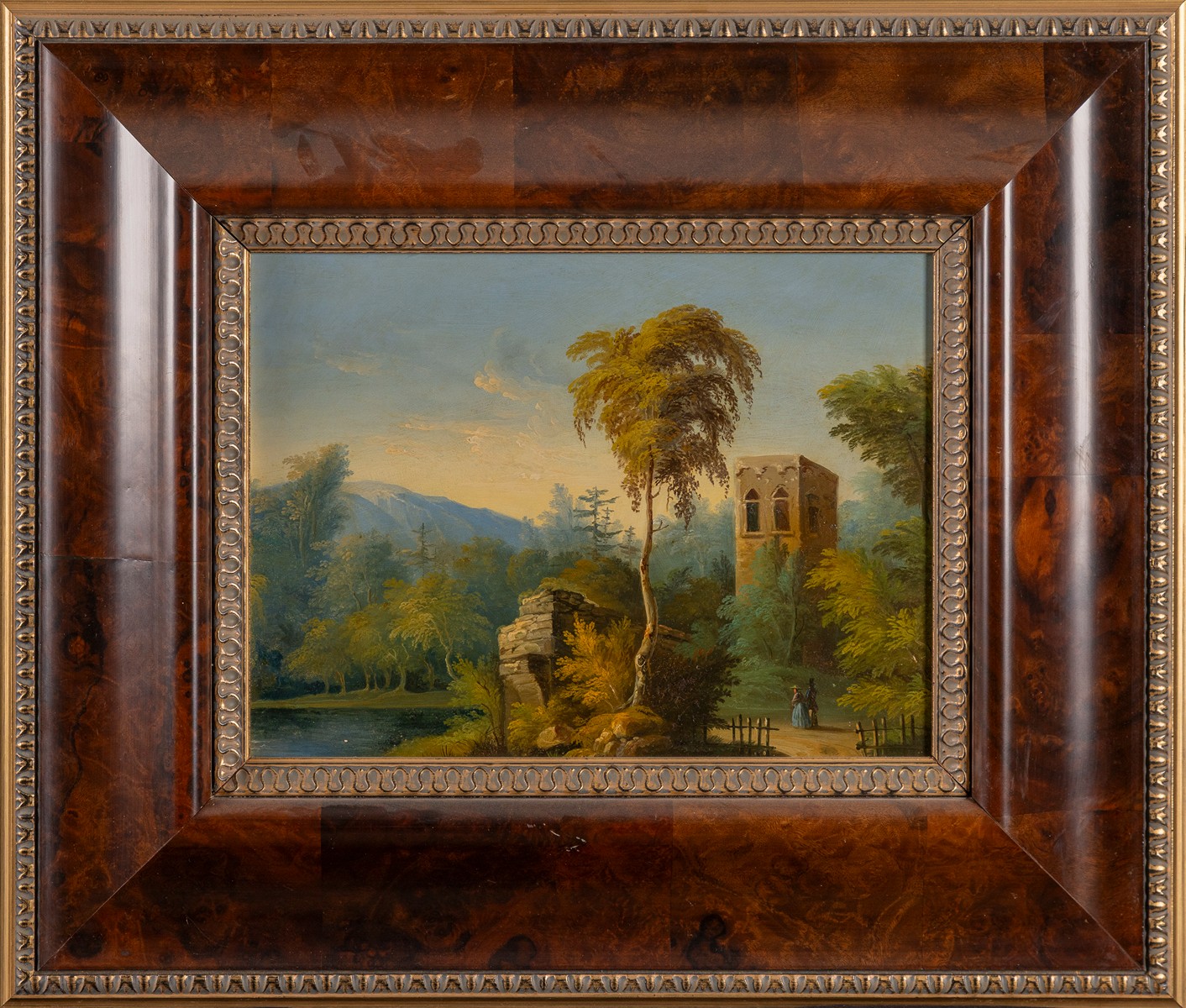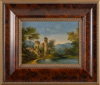 Romantické krajiny se zříceninou a vodní plochou - párové obrazy