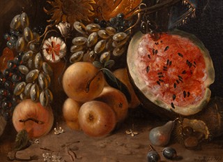 F. R. Lubia - Zátiší se stříbrem a ovocem