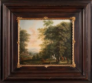 Lesnatá krajina s galantní společností - párové obrazy