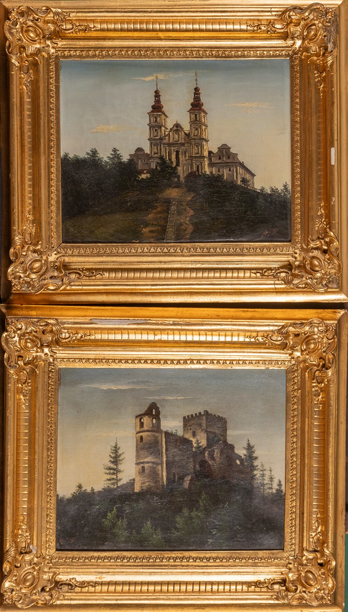 Pohled na Mariatrost v Grazu a na zříceninu hradu - párové obrazy