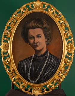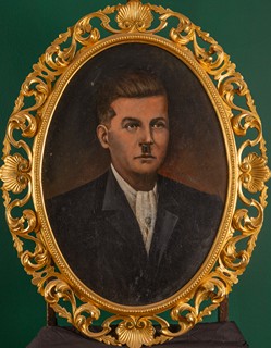 20. století, olej/plátno, oválný tvar, dřevěný vyřezávaný a zlacený rám