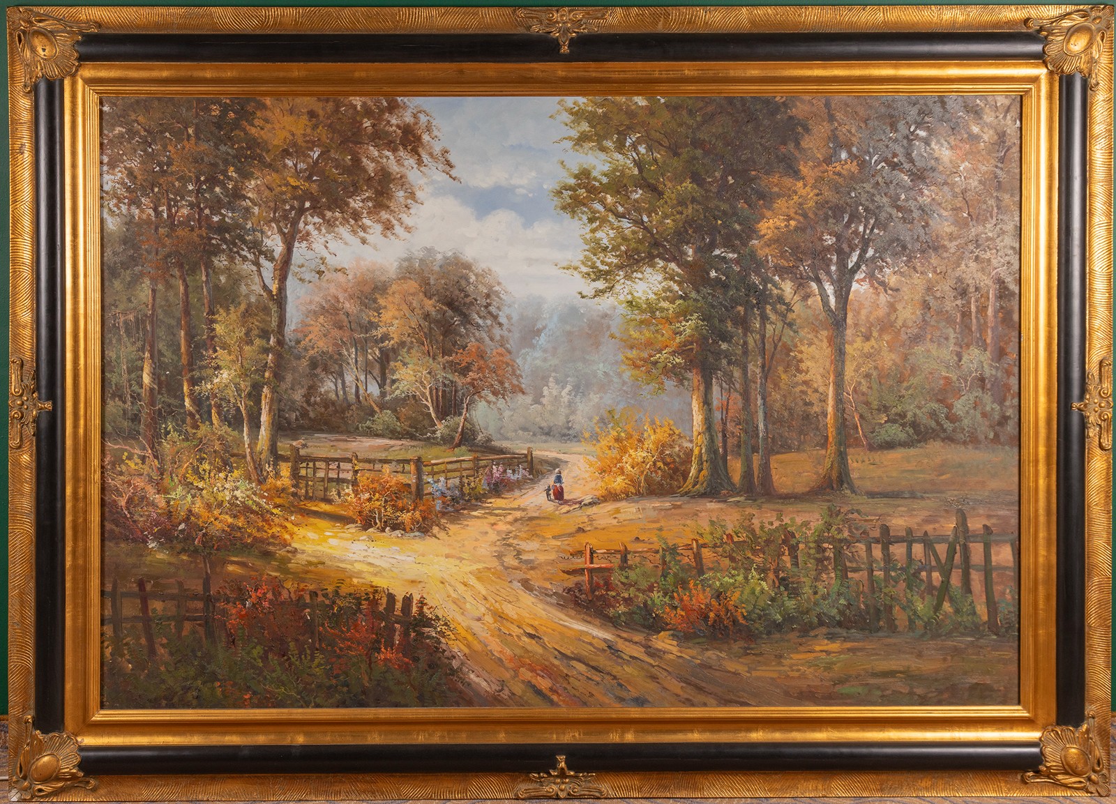 Podzimní lesnatá krajina s postavami na rozcestí - velký formát