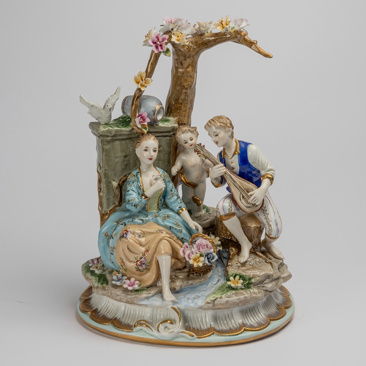 novodobé, porcelán, pestře malovaný a zlacený, nepravá značka Míšně, lehce poškozeno