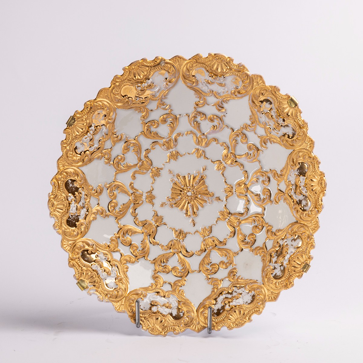2. pol. 19. století, Míšeň, porcelán, reliéfní zlacený dekor, modrá značka mečů pod glazurou, lehce otřeno
