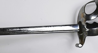 RU důstojnická šavle pro infanterii, s pochvou, značeno, Hörster Solingen, bohatě gravírovaná čepel, délka čepele 83 cm, délka celkem 98 cm, stopy koroze